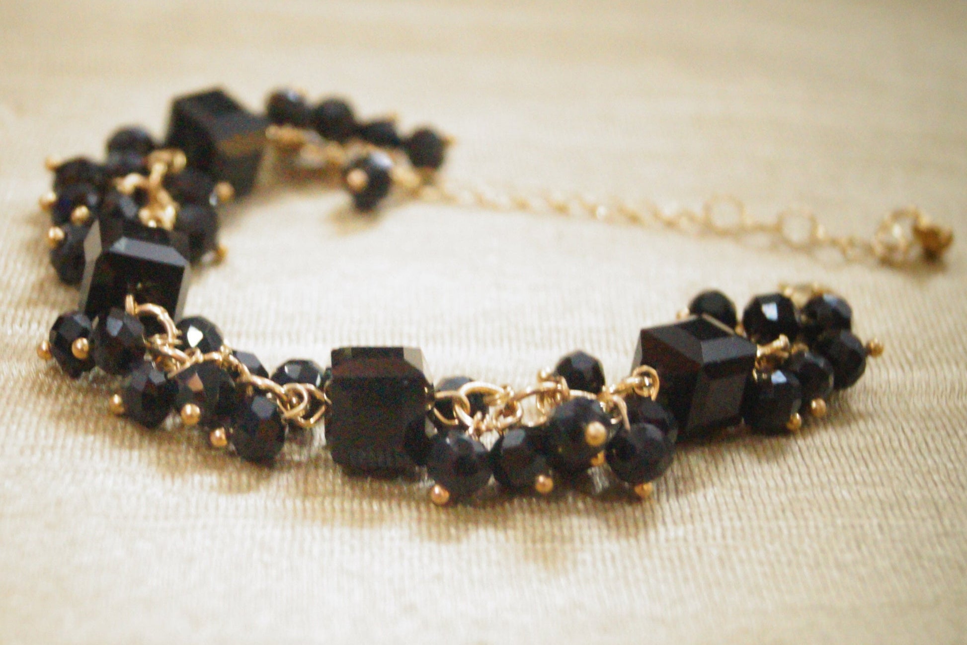 Bold. Elegant. Magnetic. "Luna Charm" blends deep black crystals with golden accents for a look that mesmerizes under moonlight.